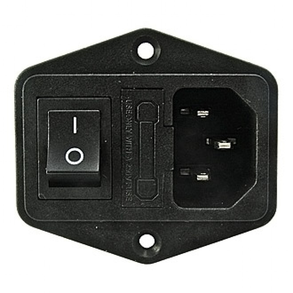 AC-014 вилка на блок с заземлением с держ. предохранителя и выключателем(отв. под винты) RUiCHi