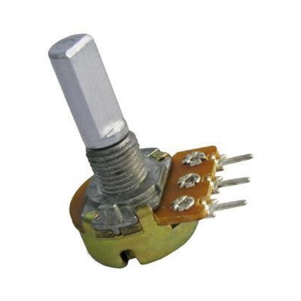 Резистор переменный B5K 3pin 17мм шаг 5мм мет ручка с лыской, гайка